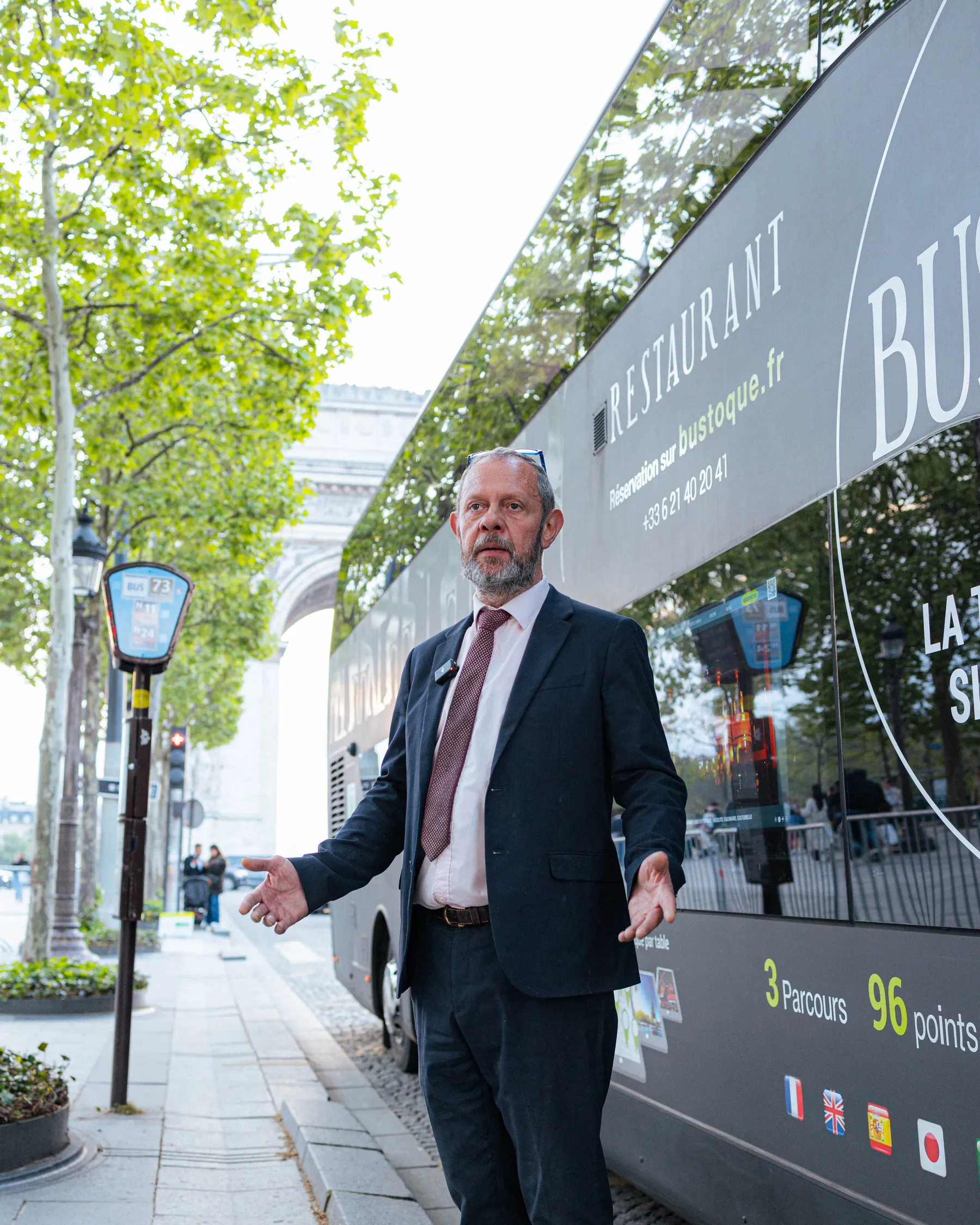 Contrairement aux bus touristiques classiques, Bus Toqué n’est pas seulement un moyen de transport panoramique. C’est un restaurant bistronomique itinérant. À bord d’un bus haut de gamme entièrement vitré, les passagers explorent les monuments emblématiques de Paris lors d’un itinéraire panoramique et bistronomique complet, avec vue sur les principales attractions et musées, tout en dégustant un repas raffiné.
