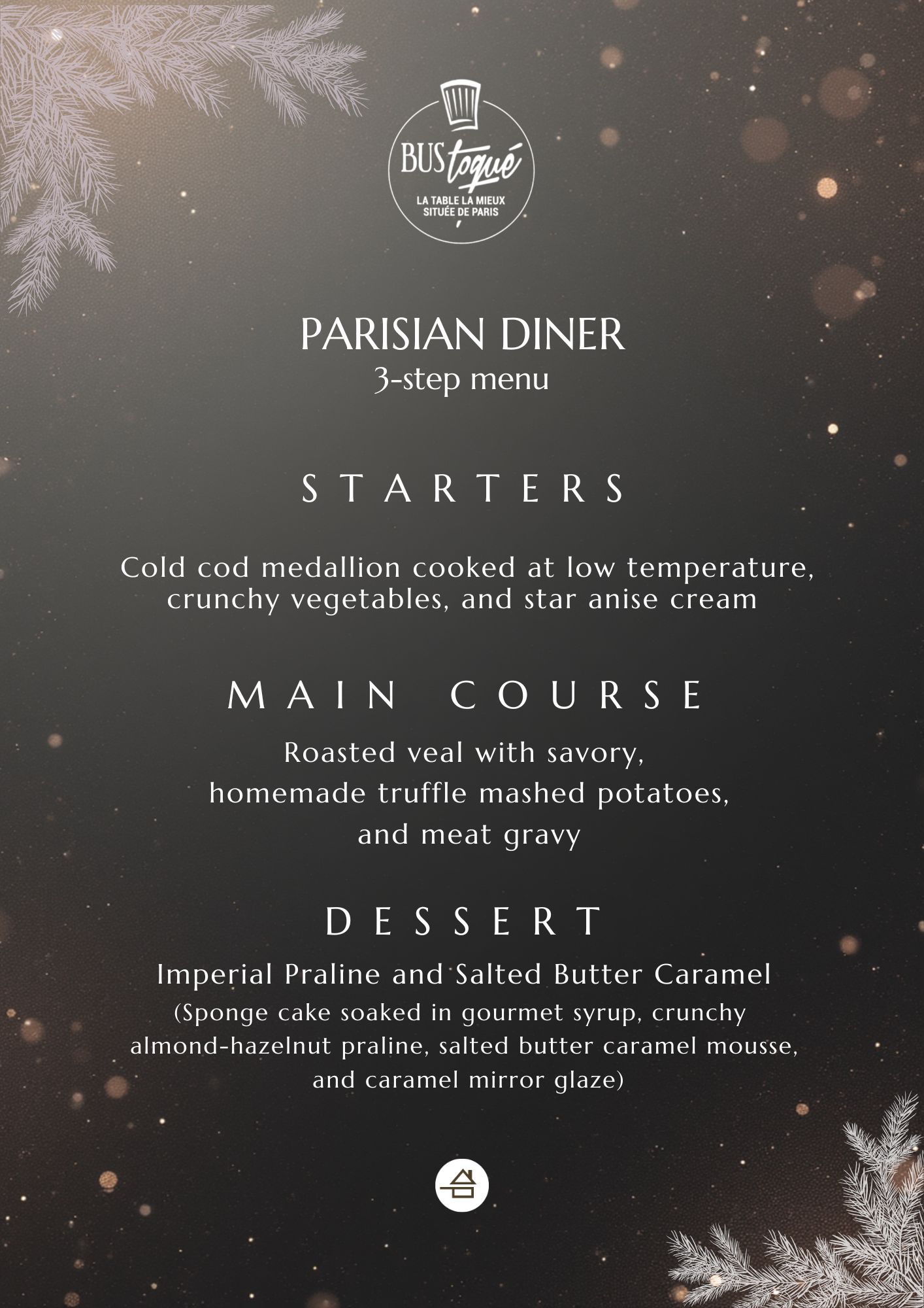 PARISIAN DINNER CHAMPAGNE* – 150€ per pers.
