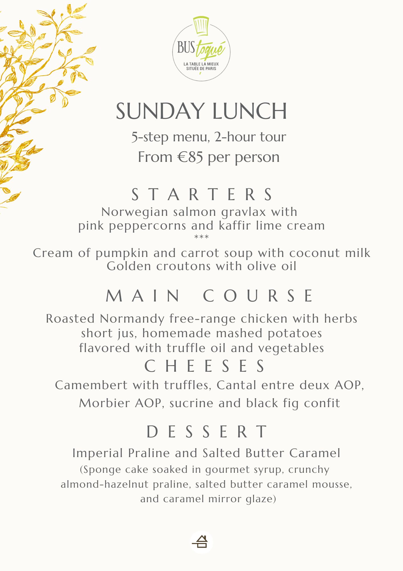 *Unique menu – In order to make you live an unusual adventure with quality dishes while respecting hygiene and safety standards, technical constraints and approvals,