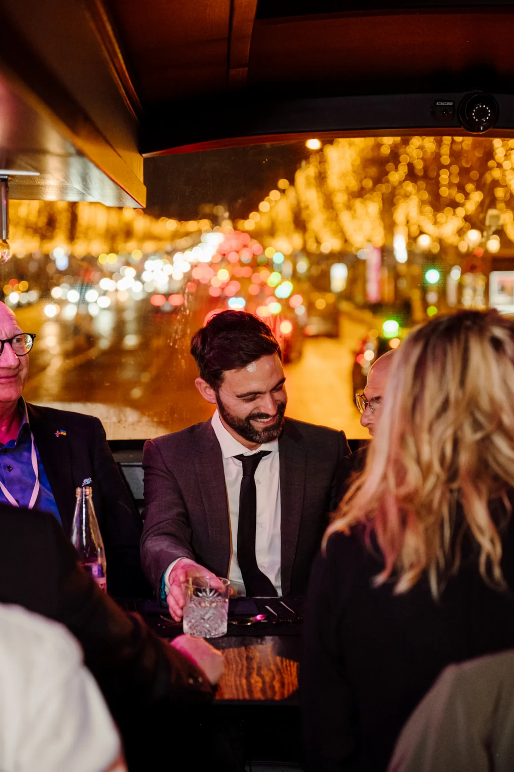 Installé dans un bus panoramique haut de gamme, Bus Toqué transforme le repas en véritable visite guidée. Pendant près de deux heures, les convives parcourent les rues de Paris en admirant les monuments les plus célèbres.