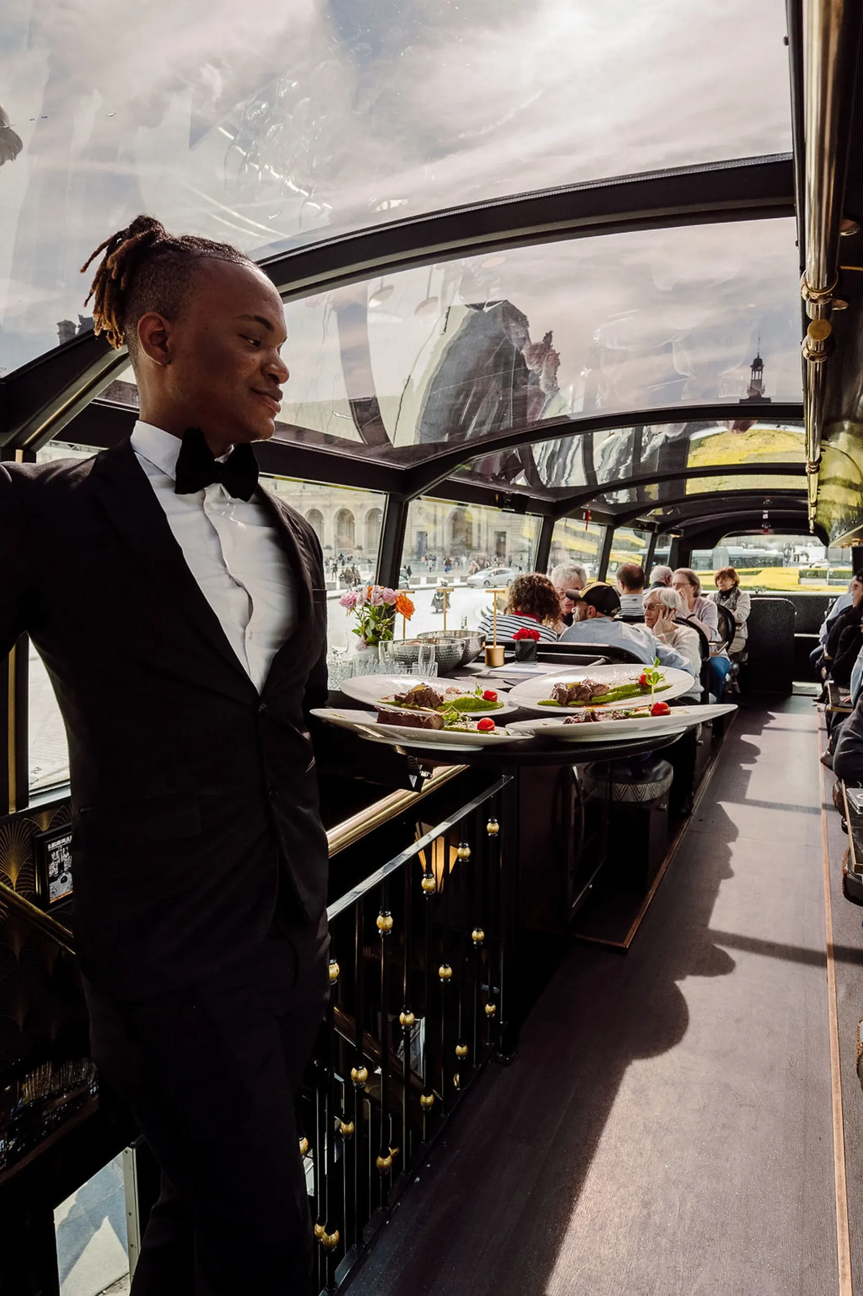 Chaque monument s’offre aux convives comme un décor vivant au rythme du dîner bistronomique , du premier au dernier plat cuisiné par un chef passionné, à découvrir depuis la terrasse vitrée du bus.